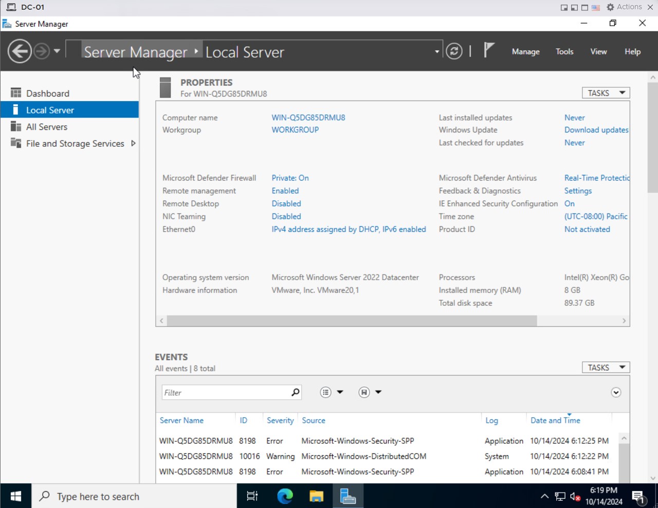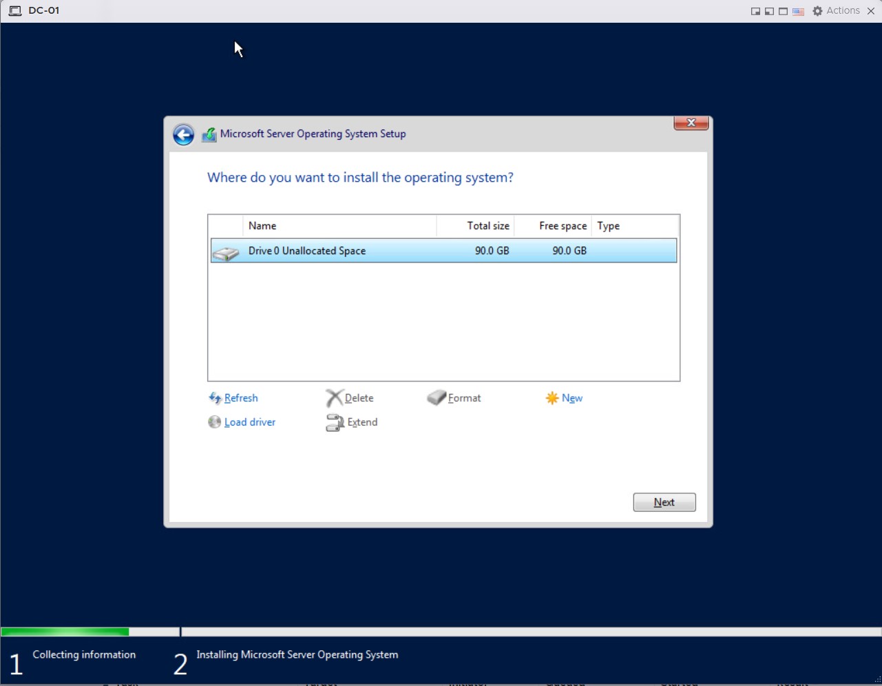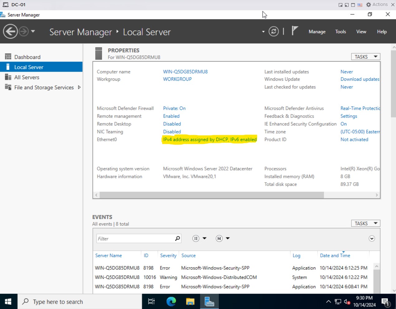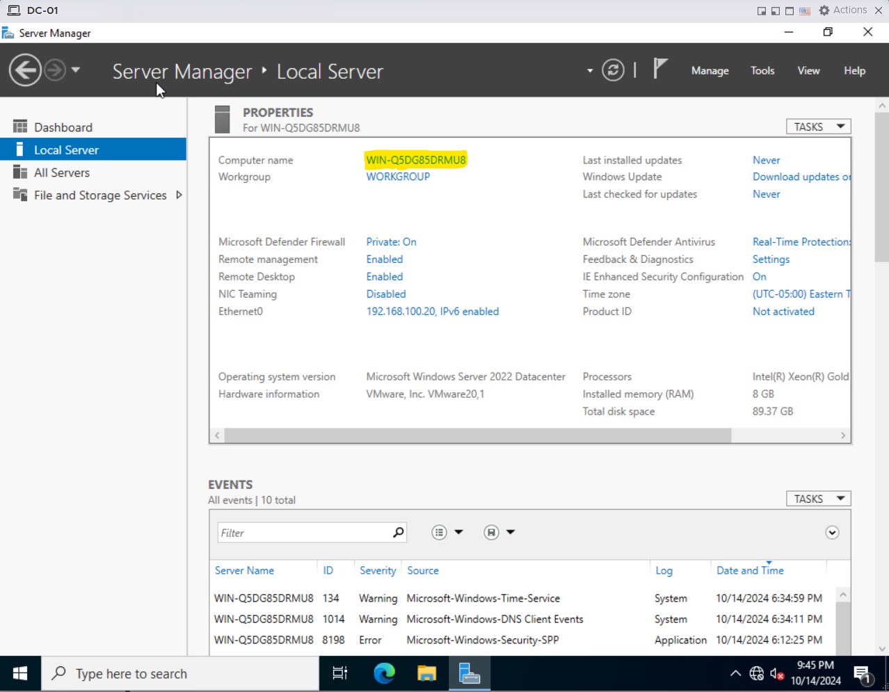 I'm planning on making this server my domain controller so I will call it DC-01. The rest of the details are as follows: