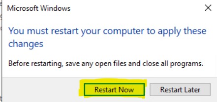 Once I am done it will tell me that I need to reboot to apply the changes and will give me to option to reboot now or later. I will reboot now.
