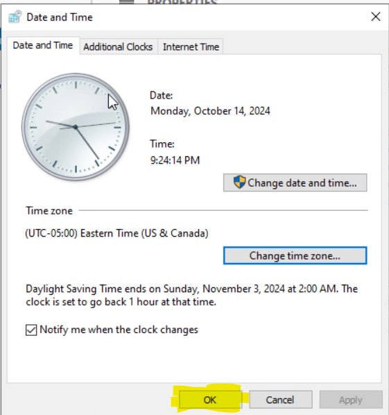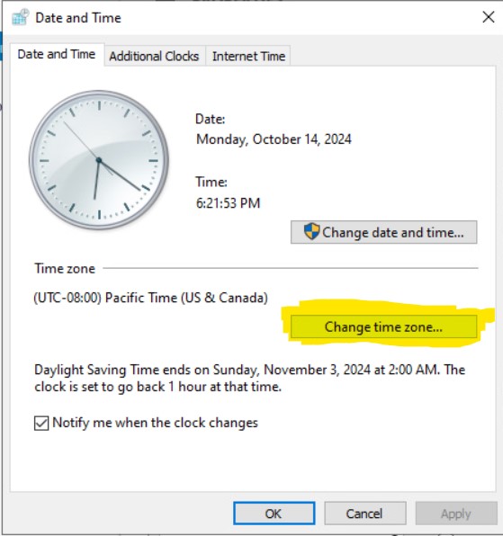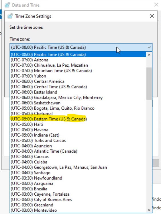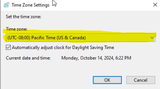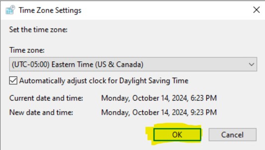 First I will change my Timezone, I can click on the link next to Timezone to change this. I will select Eastern Time as my timezone.