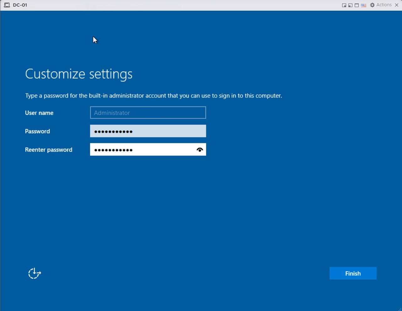 Once Windows Reboot it will ask you to create an Administrator password. Enter and Re-enter your password and click finish.