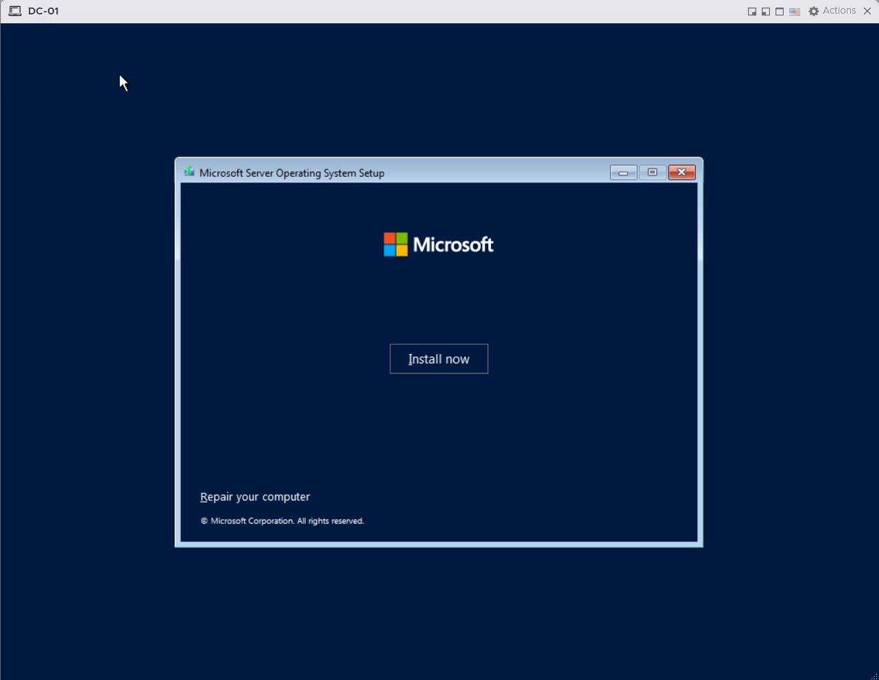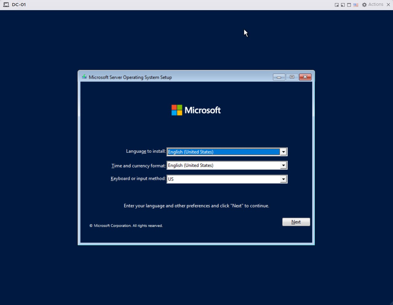 My next step will be to install the Active Directory Role on my new DC-01 Server.