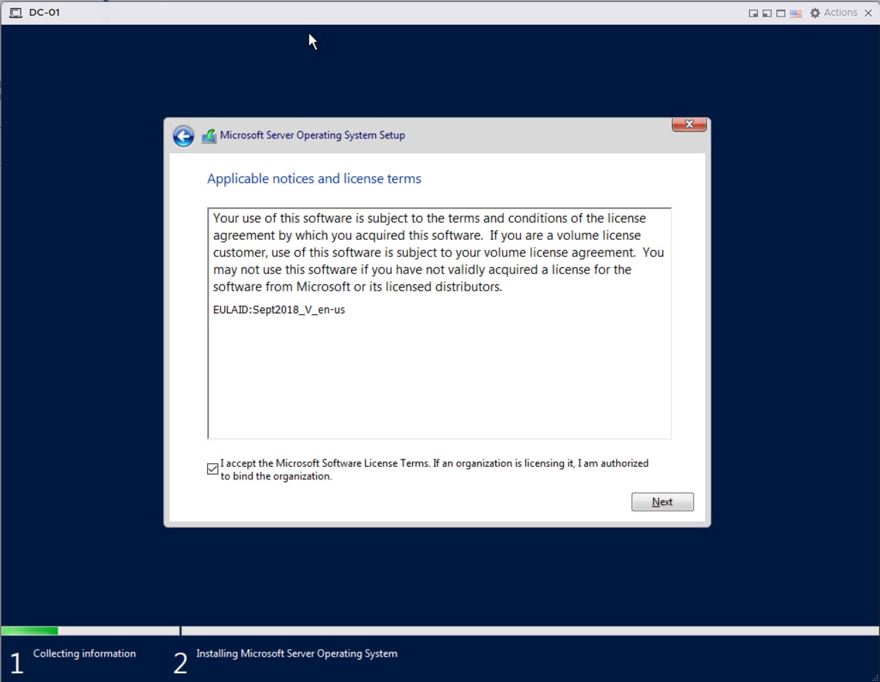 This is basically how I will be creating all of my Windows Servers. Usually in my production environment I will have a License key to use but since I'm doing this in my homelab that will be blown away after I'm done, it's not currently needed. The only things I will change will be the Computer Name and the IP Address.