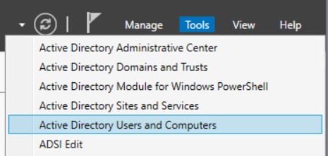 Inside of Server Manager, I can click Tools and from there I can click Active Directory Users and Computers