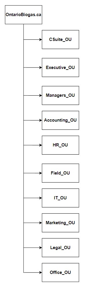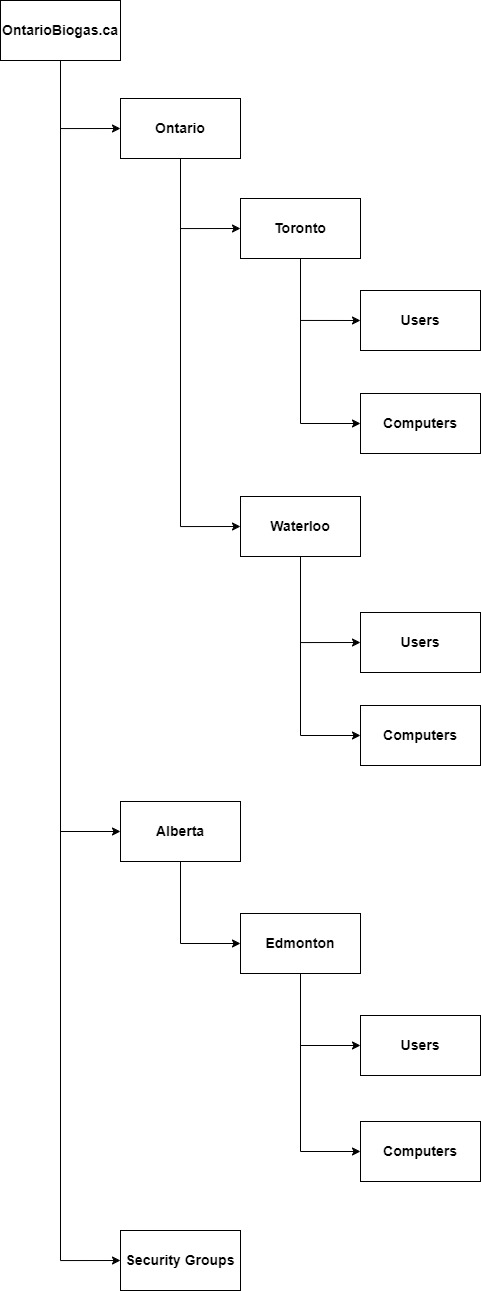 This way, we can make things a little bit more clean and organization. However, this is designed based on the current state of Ontario Biogas. However, maybe we should plan for the future. Let's say in 5 years Ontario Biogas who has it's head office in Toronto, ON, opens a branch office in Waterloo, ON and buys another Biogas plan in Alberta. Our structure can now look like this.