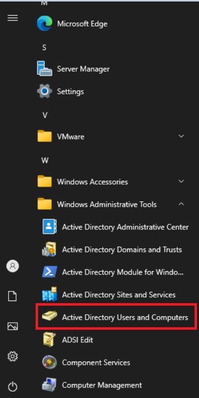 Click on the Start Menu, then look for the Windows Administrative Tools folder and from there Open Active Directory Users and Computers