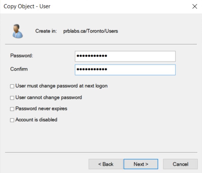 And there you know, I just created Cory's account by copying Keanu's. Now, what I just did, doesn't really serve any purpose besides showing you how the copying function works. Keanu isn't added to any security groups or has any details about his account filled in, really not nothing was transferred over to Cory's account, but we will revisit this option later as we continue to build our Windows Server Infrastructure.