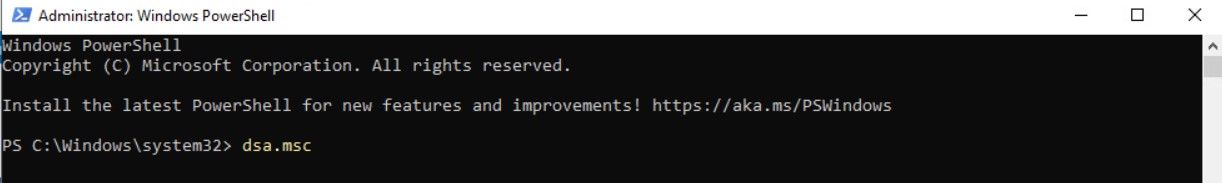 Similarly, if you're inside of a powershell session, you can also dsa.msc and then press enter, to launch Active Directory Users and Computers.