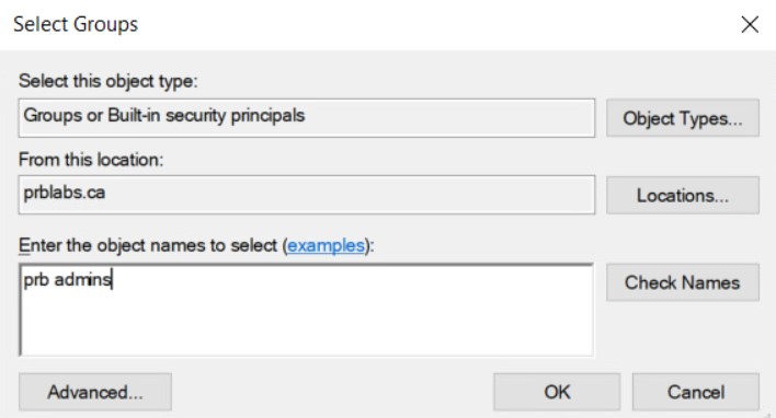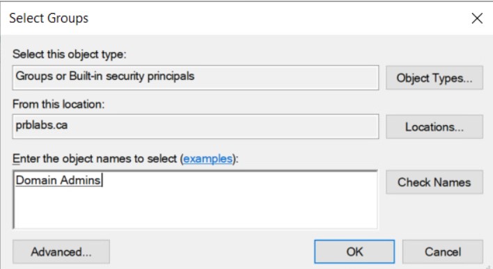 Then click Check Names and you will see your Domain Admins name will now have an underline below it.